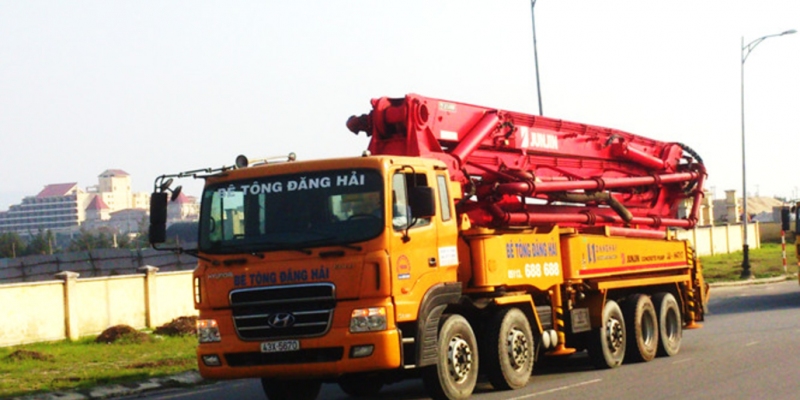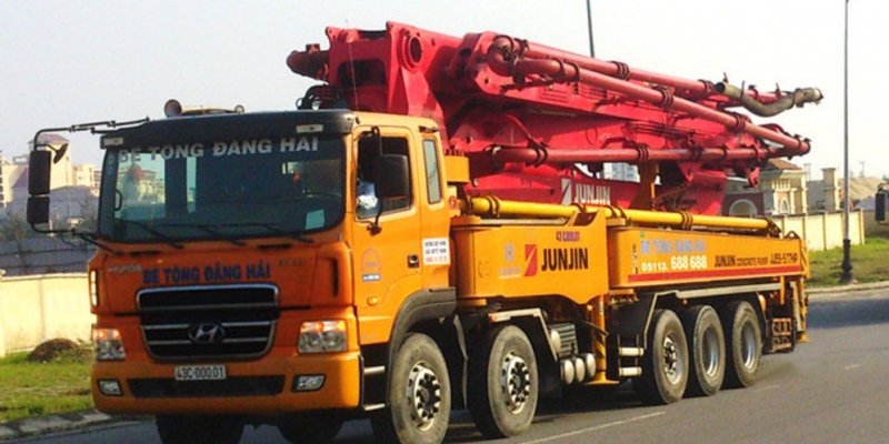 Xe bơm bê tông hiệu JUNJIN đạt tiêu chuẩn EUR, cần bơm 55m.