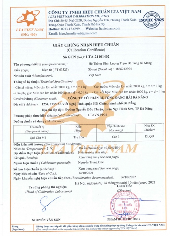 CÔNG TY CỔ PHẦN BÊ TÔNG ĐĂNG HẢI ĐÀ NẴNG